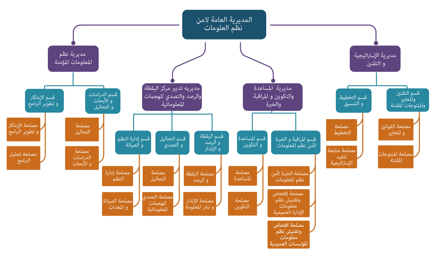 تتكلف هذه المديرية بإعداد الاستراتيجية الوطنية في مجال أمن نظم المعلومات باتفاق مع القطاعات المعينة. تتولى بالإضافة الى ذلك، اقتراح مشاريع النصوص القانونية والتنظيمية التي لها علاقة بأمن نظم المعلومات، دراسة الملفات المتعلقة خاصة بالتصاريح ورخص المنتوجات المقننة وكذا المصادقة على أنظمة إحداث وفحص التوقيع الإلكتروني